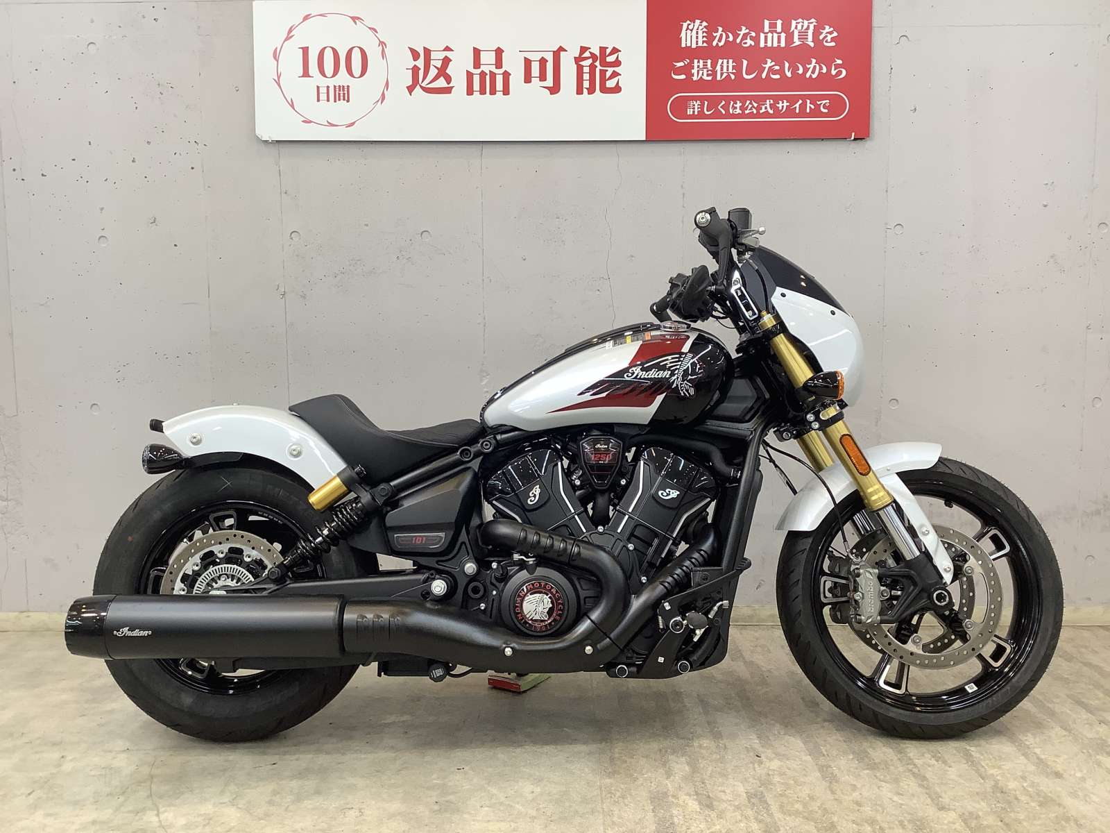 インディアン・モーターサイクルの正規ディーラーで中古のモーターサイクルを購入することは、信頼と安心の保証です。インディアン・モーターサイクルの正規ディーラーの中古車の保障詳細については、お近くのインディアン・モーターサイクルのディーラーまでお問い合わせください。 早速中古の101スカウト入庫いたしました!いわゆる新古車といっていい程度となります!!